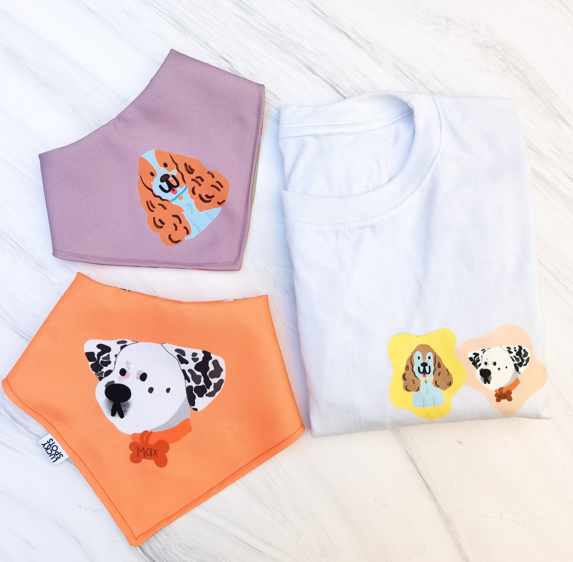 ¡Lleva a tus perros siempre contigo con nuestro kit "Siempre contigo"! Incluye una playera con dos caritas, dos bandanas, dos juguetes y dos wallpapers con la carita de tu perro ilustrada